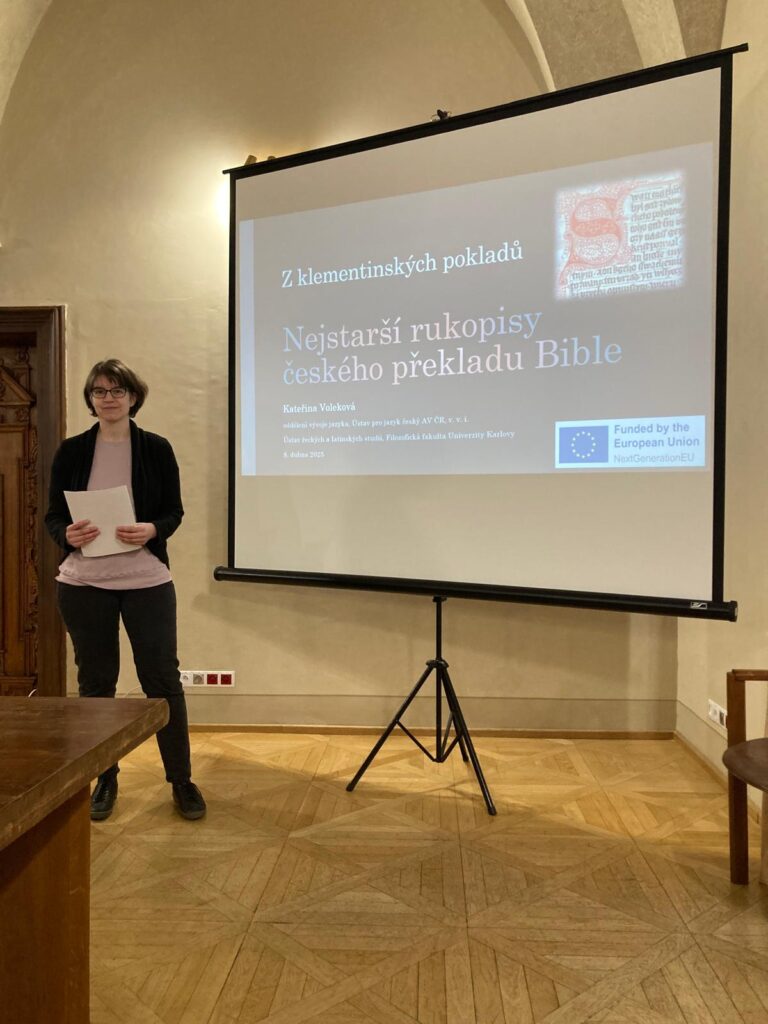 Inozemna suradnica na projektu BOHEM dr. sc. Kateřina Voleková iz Instituta za češki jezik u Pragu održala je predavanje u kojemu se osvrnula na najstarije prijevode Biblije na češki jezik, ali i na prijevod Homilijara na Matejevo evanđenje s češkoga na hrvatski jezik. Tekst Homilijara jedan je od tekstova koji čini korpus čeških prijevoda nastalih za boravka hrvatskih glagoljaša u Pragu. Predavanje pod naslovom Nejstarší rukopisy českého překladu Bible (Najstariji rukopisi prijevoda Biblije na češki jezik) održala je u Klementinumu, u Nacionalnoj knjižnici u Pragu u sklopu ciklusa Z klementinských pokladů (Iz klementinske riznice) 8. travnja 2025. godine.