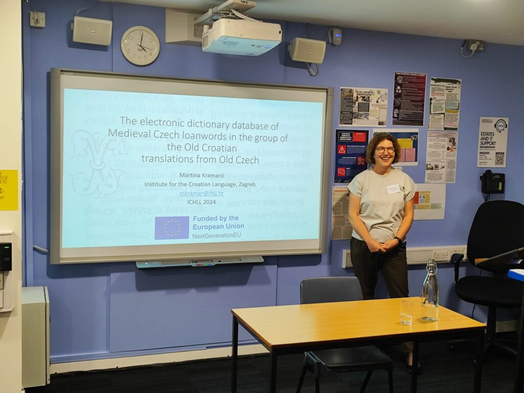 Voditeljica projekta dr. sc. Martina Kramarić sudjelovala je izlaganjem The electronic dictionary base of Medieval Czech Loanwords in the group of the Old Croatian translations from Old Czech na ovogodišnjoj međunarodnoj konferenciji The International Conference for Historical Lexicography and Lexicology (ICHLL 2024), koja se održala od 18. do 20. lipnja 2024. u Londonu, University of Westminster.