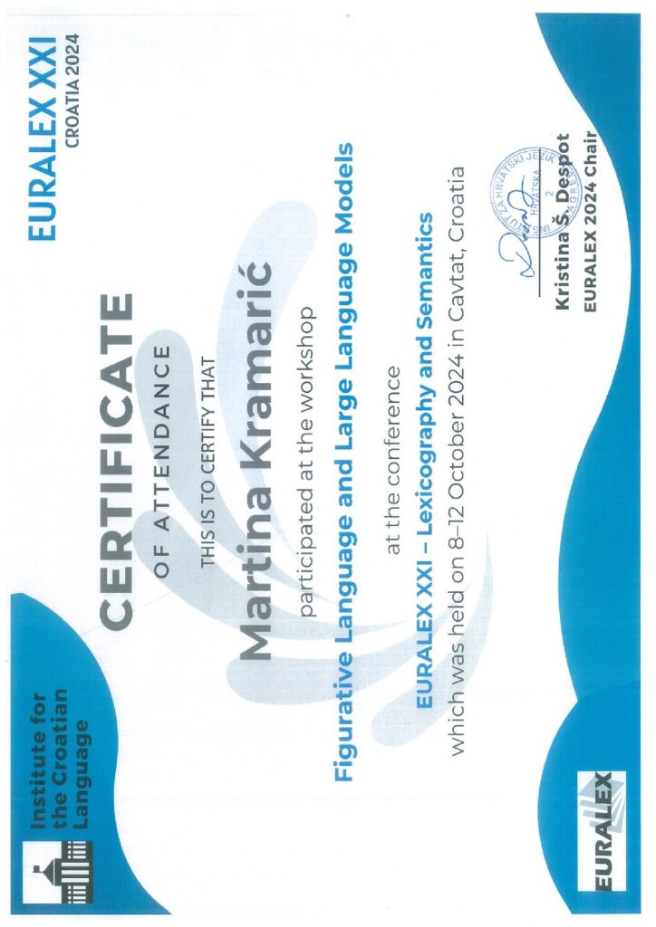 Sudjelovanje na radionici Figurative Language and Large Language Models na EURALEX XXI – Lexicography and Semantics konferenciji
